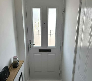 Composite doors (timber-look skins, insulated cores) for strength, security and low maintenance